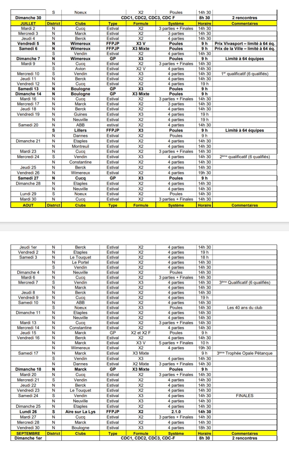 CALENDRIER CD 62 2024 Juillet-Août 2024