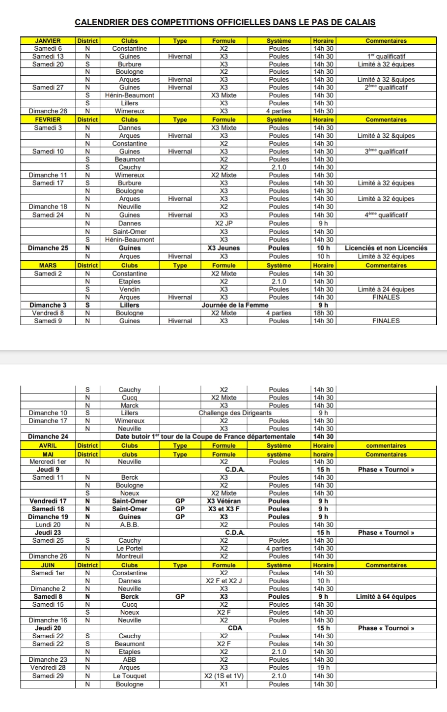 CALENDRIER CD 62 2024 Juillet-Août 2024